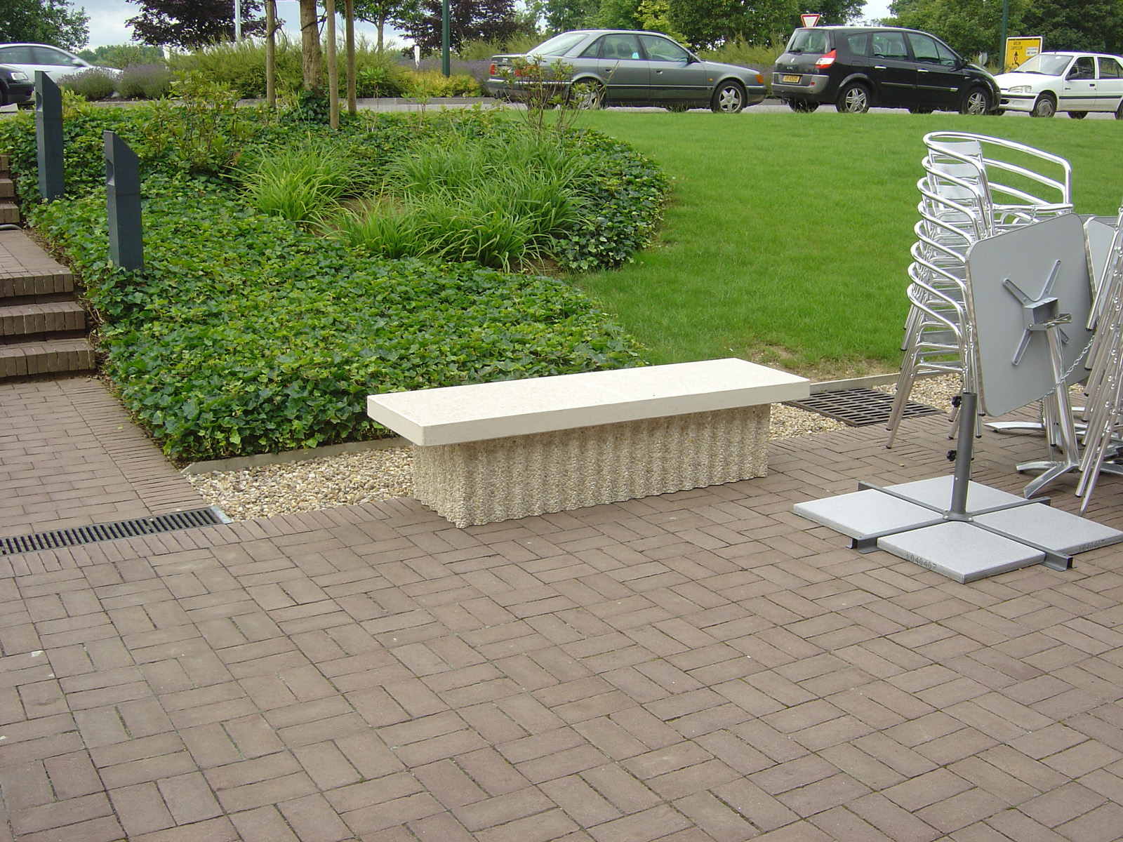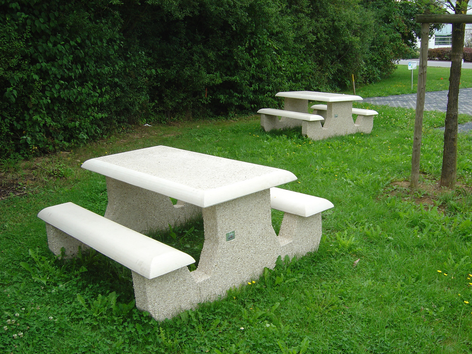 Tables, bancs, jardinières, une gamme complète pour le bien-être, la protection et l’embellissement.