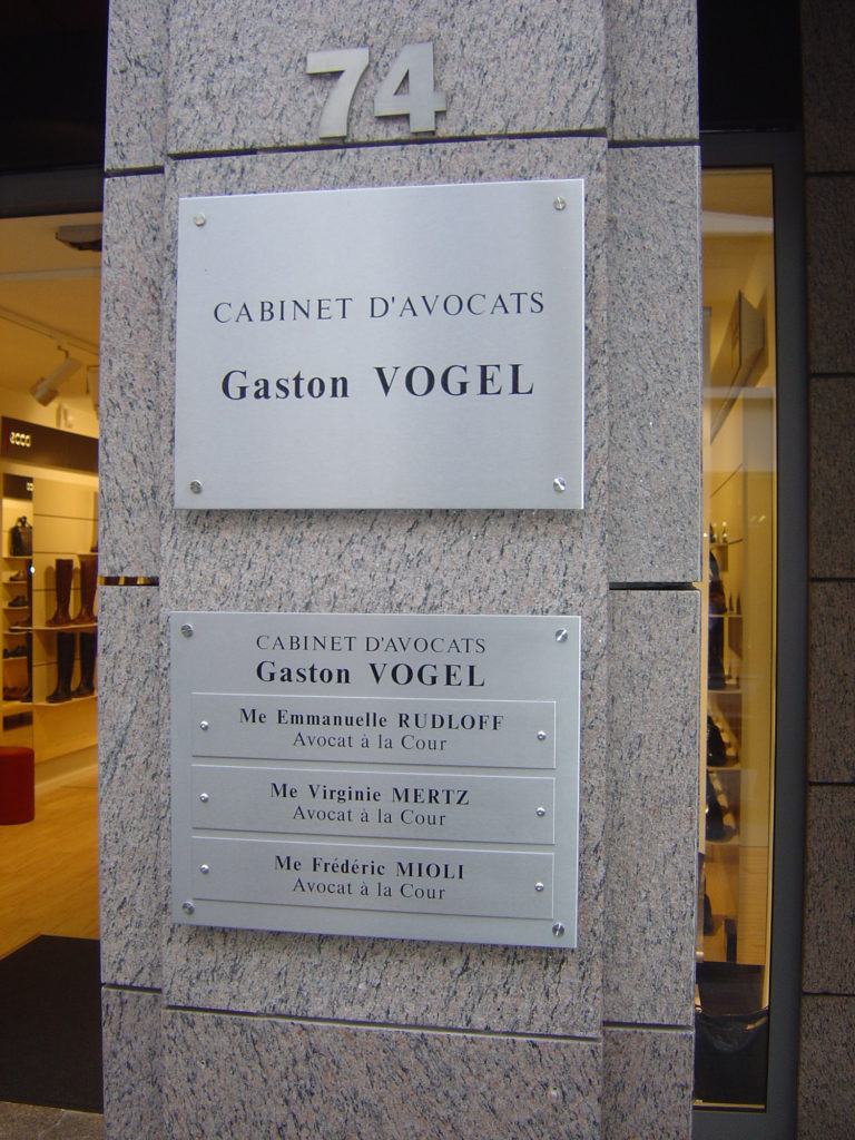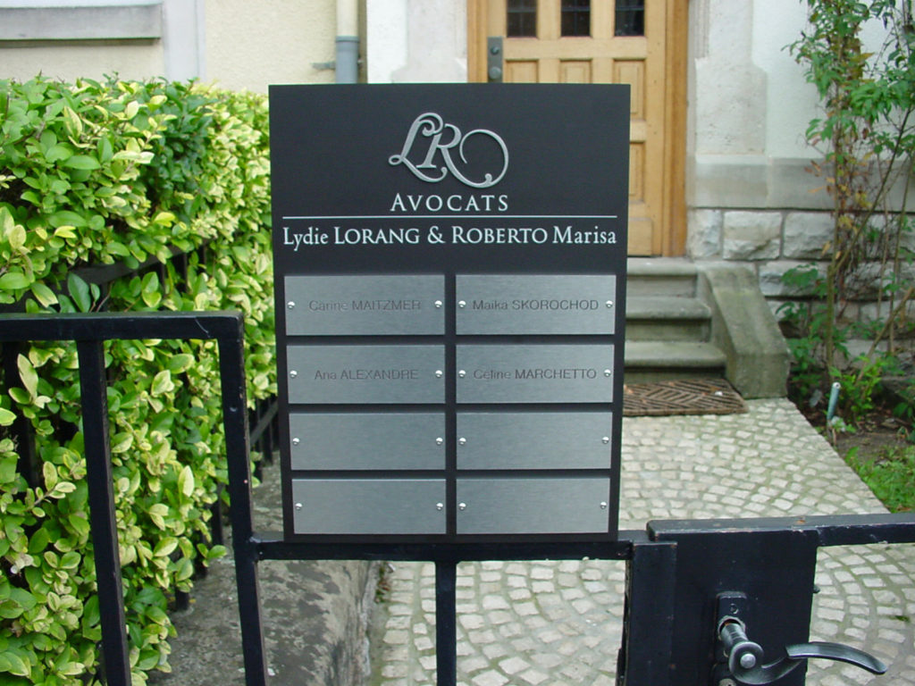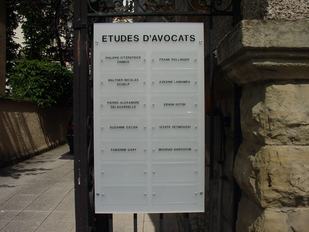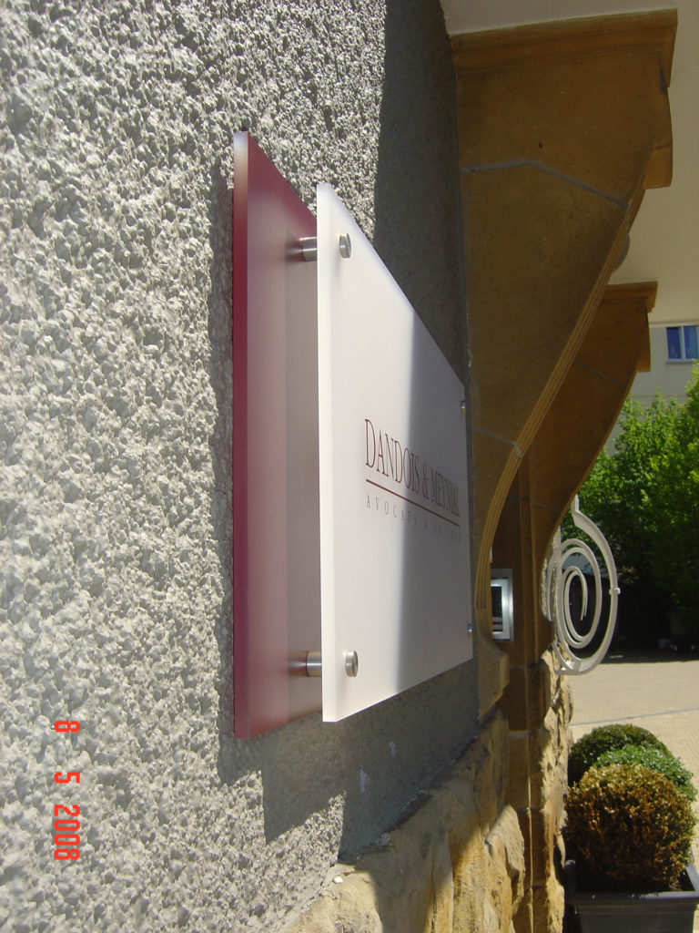 Nous travaillons tous les types de supports possibles (verre, laiton, aluminium, plexiglas, bronze …) Lettrages et logos pourront être collés, gravés, imprimés, en relief, et même coulés.