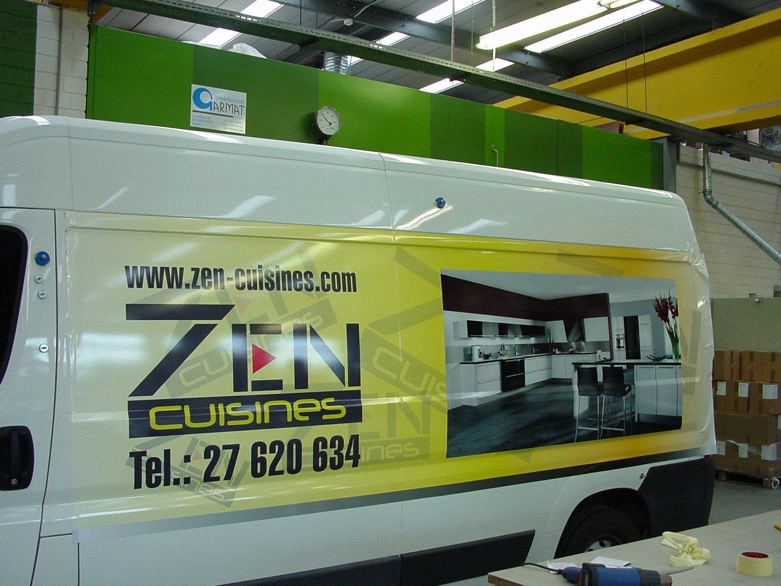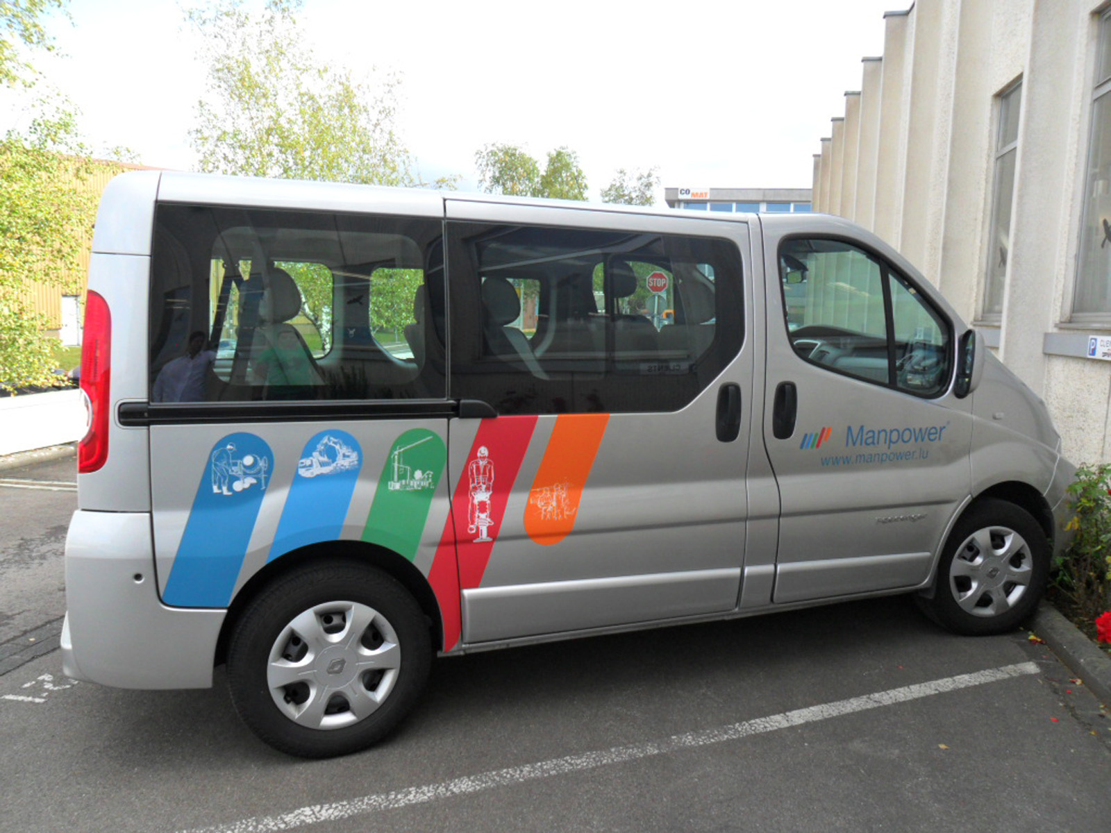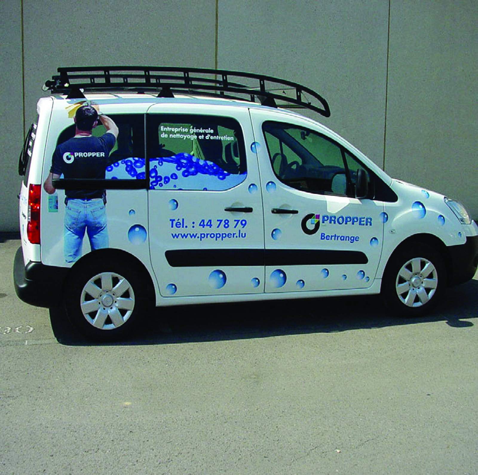 Les films et les techniques employés pour le marquage des véhicules sont variables selon l’étendue du visuel : lettrage adhésif ou habillage des parties complètes de a carrosserie : films et adhésifs vinyles conformables imprimés, découpés, adhésifs microperforés pour habiller les vitres en conservant la visibilité, etc.).