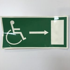 AUTOCOLLANT PHOSPHOR. 297 x 148 mm, « SORTIE DE SECOURS HANDICAPE A GAUCHE »