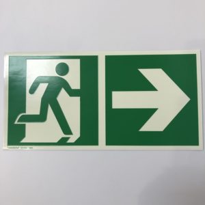 AUTOCOLLANT PHOSPHOR. 297 x 148 mm, „SORTIE DE SECOURS —–>>>“