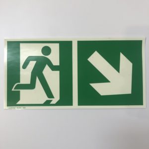 AUTOCOLLANT PHOSPHOR. 297 x 148 mm, „SORTIE DE SECOURS BAS DROITE“
