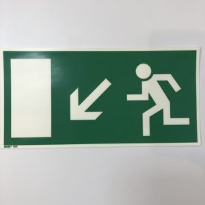 AUTOCOLLANT PHOSPHOR. 297 x 148 mm, „SORTIE DE SECOURS BAS GAUCHE“