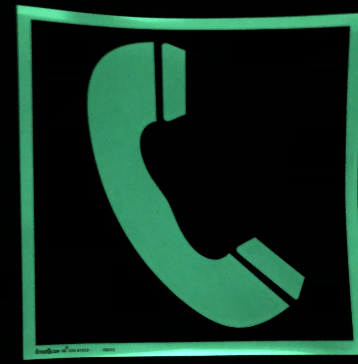 AUTOCOLLANT PHOSPHOR. 148 x 148 mm, „TELEPHONE DE SECOURS“