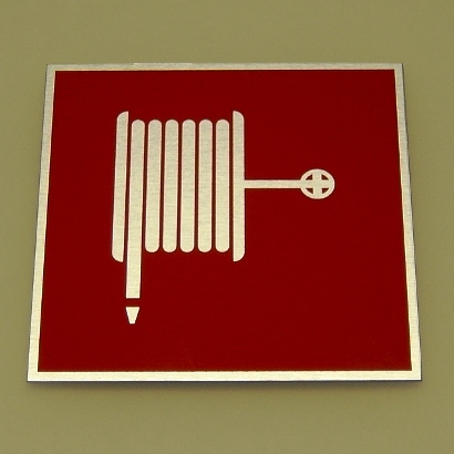 PLAQUETTE OPTIQUE INOX 120X120X1 mm „LANCE INCENDIE“