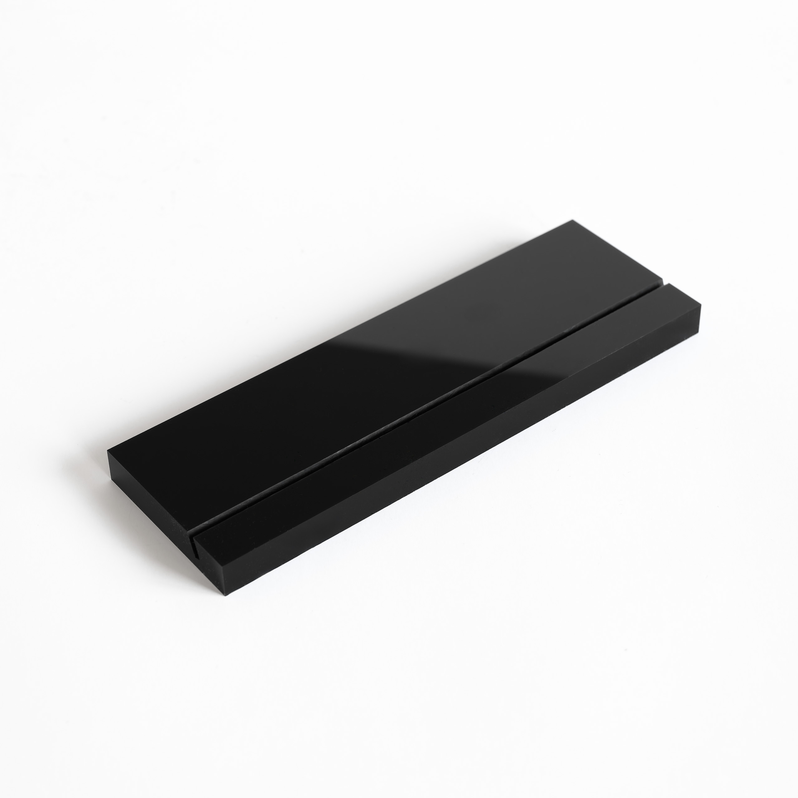 SUPPORT EN PLEXIGLAS NOIR AVEC RAINURE DIMENSIONS 150 x 50 mm