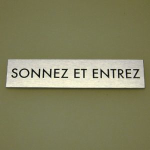 View cart “PLAQUETTE OPTIQUE INOX 180x40x1 mm “SONNEZ ET E.”” has been added to your cart.