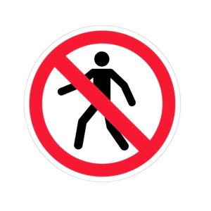 AUTOCOLLANT ROND 100 mm “INTERDIT AUX PIETONS”