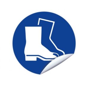 AUTOCOLLANT ROND 100 mm “PORT CHAUSSURE SECURITE OBLIGATOIRE”