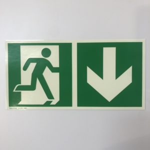 AUTOCOLLANT PHOSPHOR. 297 x 148 mm, “SORTIE DE SECOURS —–>>>”