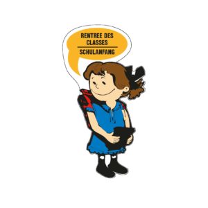 FIigurine écolier “FILLE” , en PVC cellulaire de 10 mmdécoupe à la forme, 1500 mm, 3 rails de fixation au verso