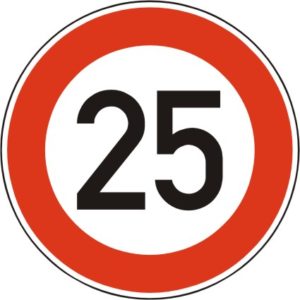 ROND EN ALUMINIUM PLAT : 2 MM, DIAMETRE : 200 mm, “VITESSE LIMITEE ” 25 KM/H”