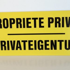 RECTANGLE EN ALUMINIUM PLAT : 2 MM, DIMENSIONS: 410 x 170 MM, “PROPRIETE PRIVEE”