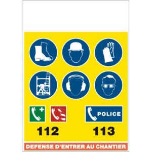 PANNEAU DE CHANTIER (DIFFERENTS PICTOS DE SECURITE) FOREX de 3 mm Dimensions 700 x 1000 mm