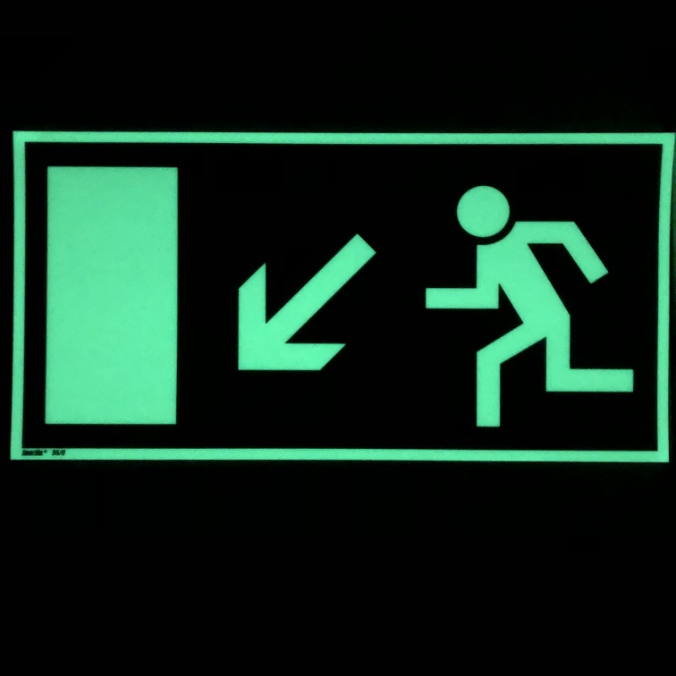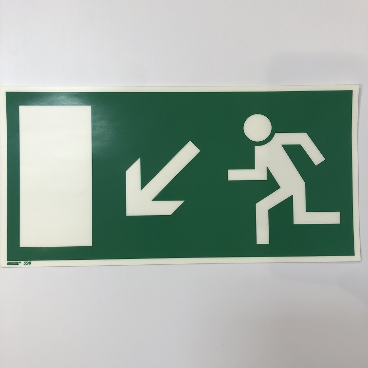 AUTOCOLLANT PHOSPHOR. 297 x 148 mm, “SORTIE DE SECOURS BAS GAUCHE”
