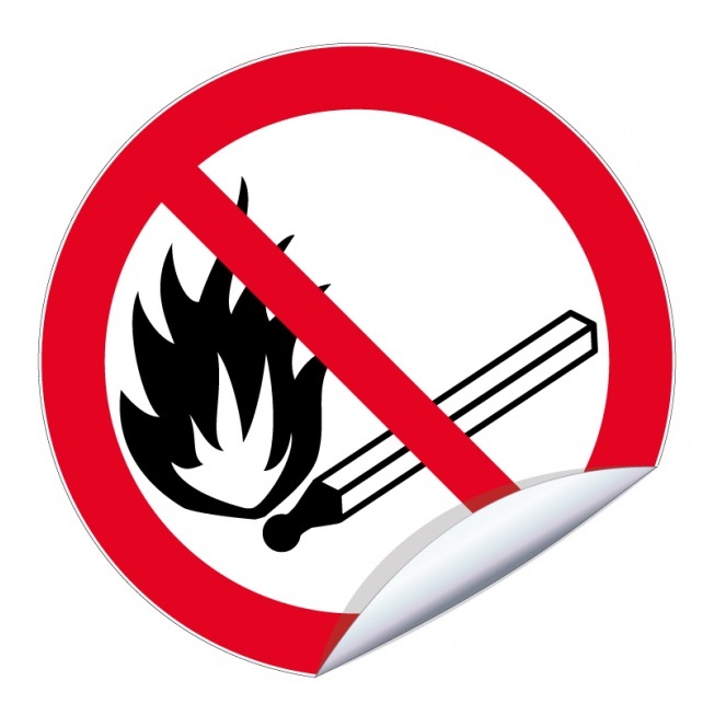 AUTOCOLLANT ROND 200 mm “FEUX OUVERTS INTERDITS”