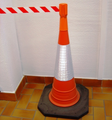 CONE EN PVC ROUGE/BLANC RF H=1000 mm + DEROULEUR ROUGE/BLANC 4 m