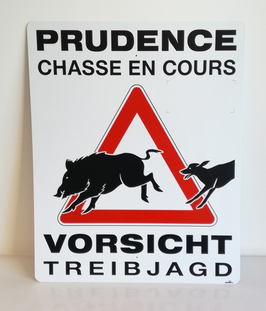PLAQUE EN PVC “VK” 2 mm DIMENSIONS: 600 x 745 mm, “PRUDENCE BATTUE / TREIBJAGD”