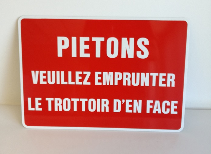 RECTANGLE EN ALUMINIUM PLAT : 2 MM, DIMENSIONS: 500 x 350 MM, “PIETONS……..etc..”