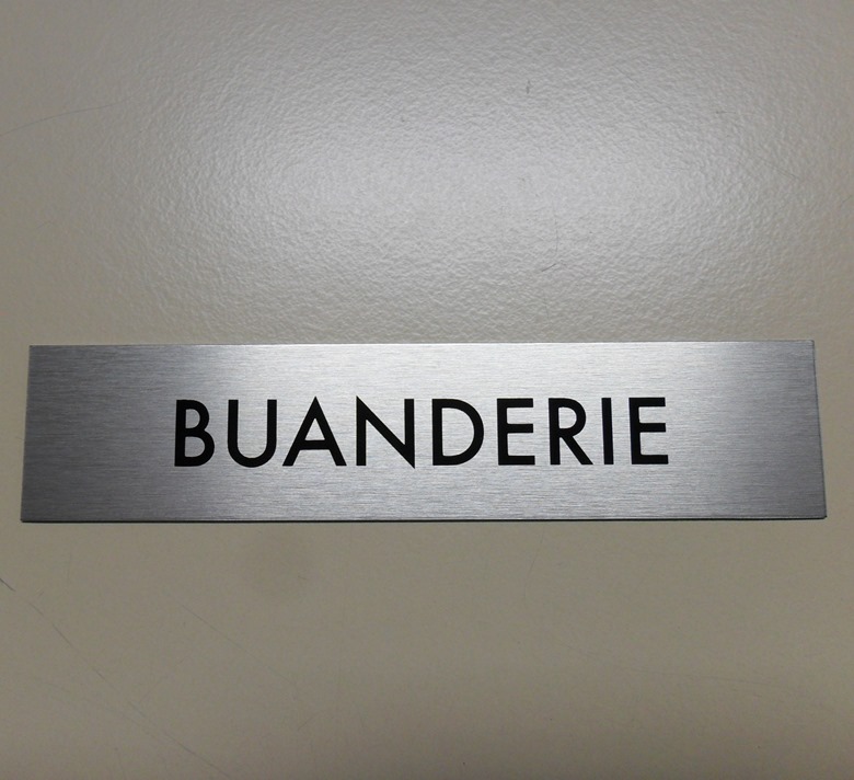 PLAQUETTE OPTIQUE INOX 180x40x1 mm « BUANDERIE »